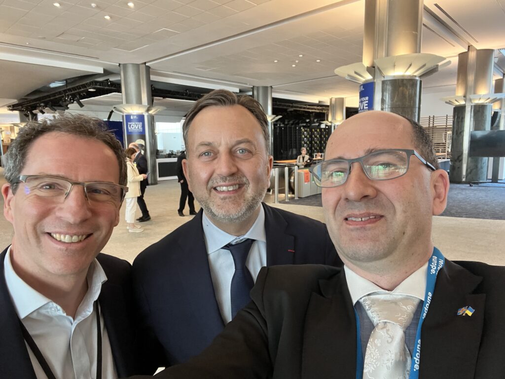 I Regionkommitten har jag anslutit mig till Renew-Europe-gruppen. På bilden är Sean O’Curneen som är generalsekreterare. I mitten Francçois Decoster som är gruppens ordförande.