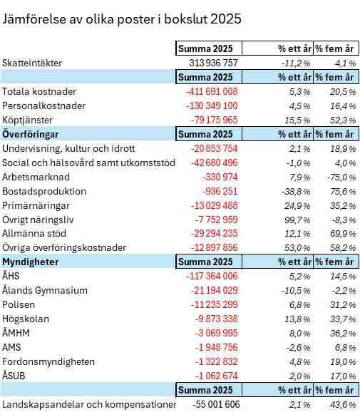 Den här veckans stora händelse i landskapsregeringen var bokslutet för 2025 som blev offentligt i torsdags. Det är en grym läsning som alldeles tydligt visar varför vi i den här regeringen håller på med våra ”resultatförbättringar”.